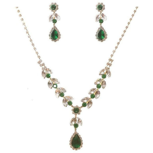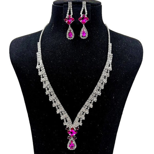 Dangle Pear Flower V Rhinestone Necklace Set