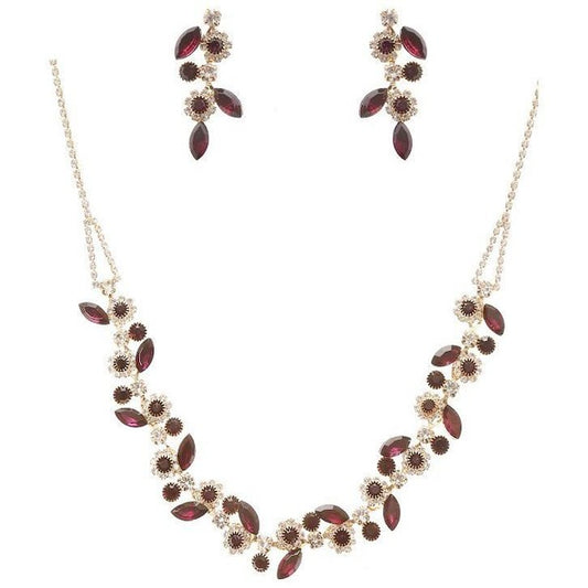 Daisy Vine Floral Line Rhinestone Necklace Set