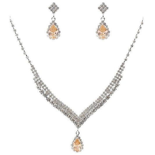 Dazzling V Dangle Pear Cubic Zirconia Necklace Set