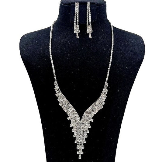 Sharp V Block Cloud Rhinestone Necklace Set