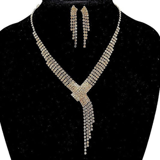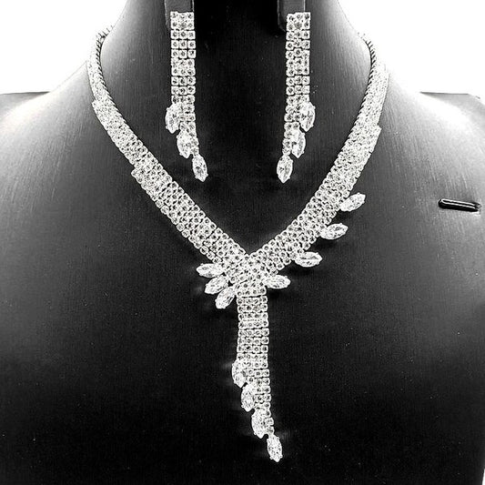 Shimmering Y Shape Cubic Zirconia Necklace Set