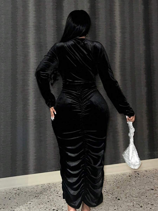 Slaydiva Plus Plunging Neck Ruched Bodycon Dress, For Winter