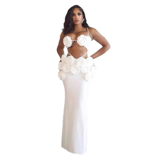 Sling Rose Midriff Outfit Backless Temperament Twinset