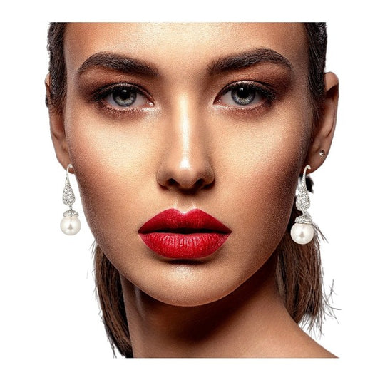 Bridal elegant Dangle Pearl Cubic CZ Earrings