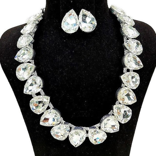 Bold Pear Crystal Rhinestone Necklace Set