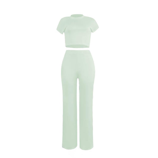 Women's Midriff Outfit Black Short Sleeve Two-piece Suit