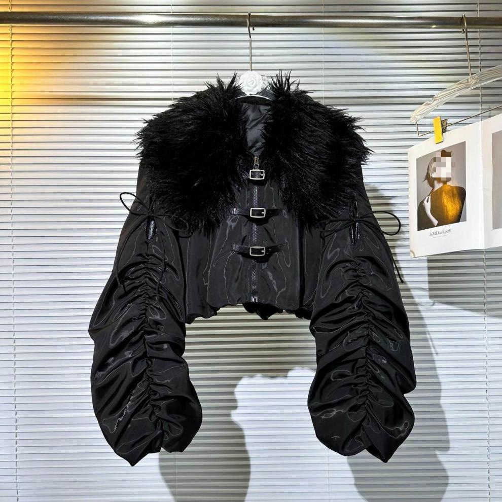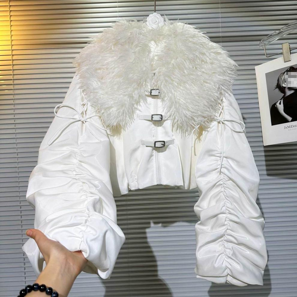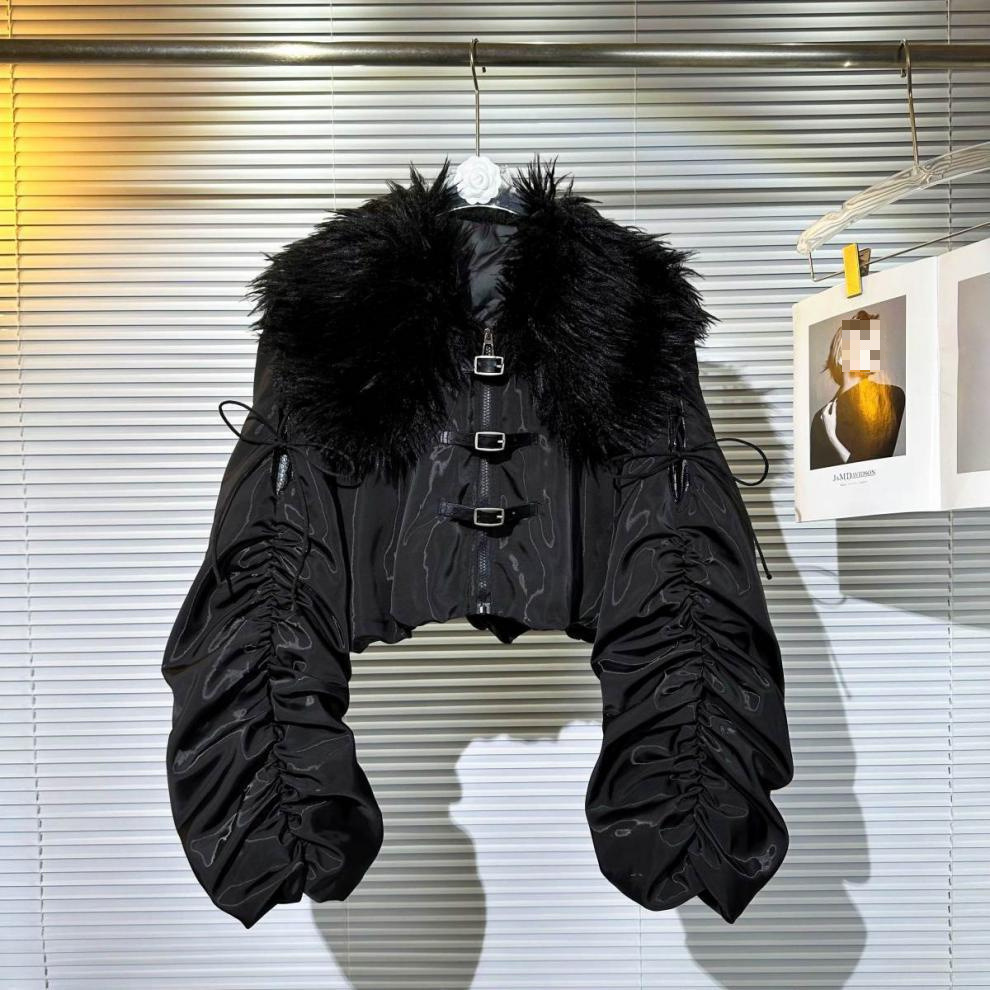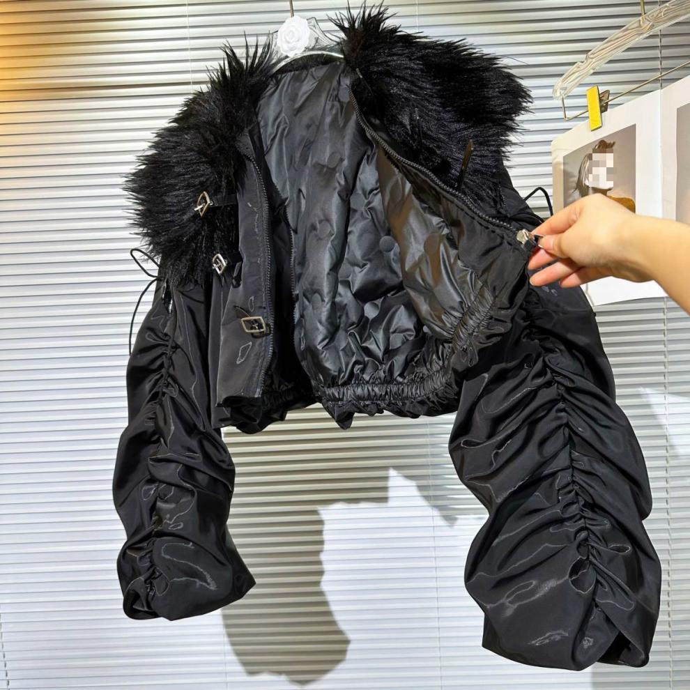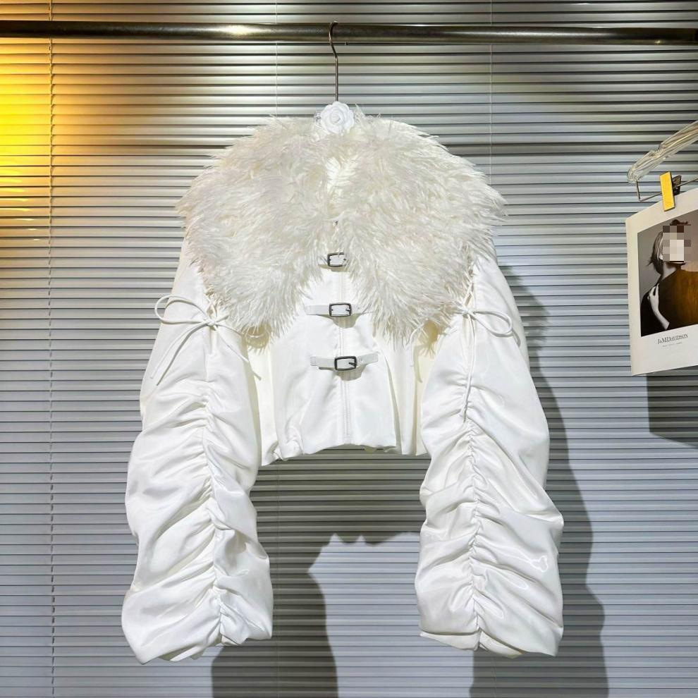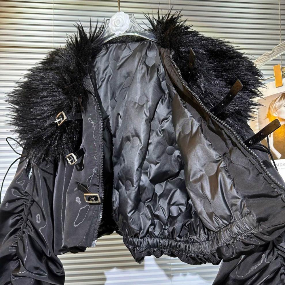 Big Fur Collar Net Red Hot Girl Wear Bright Silk Buckle Fashionable Chic Pleating Down Jacket Coat