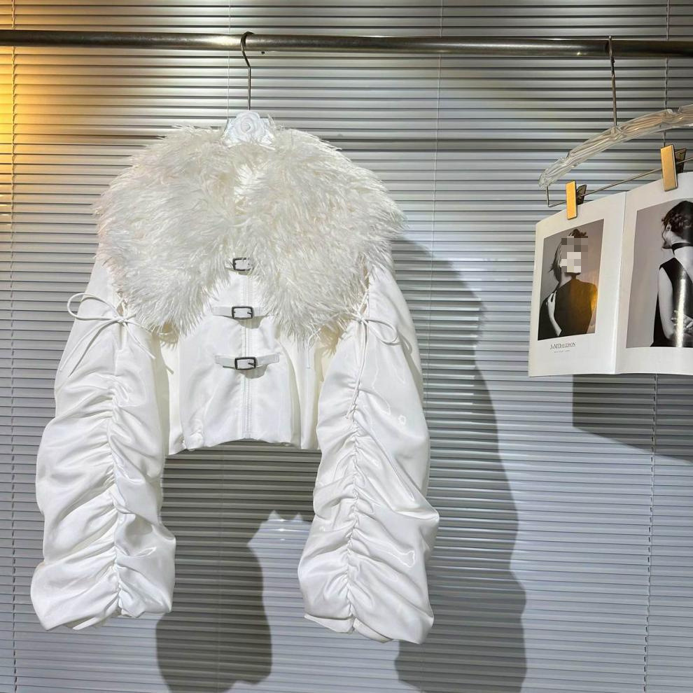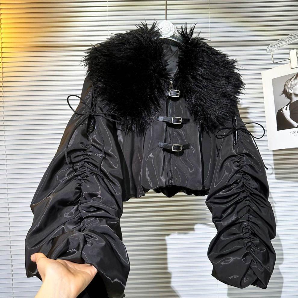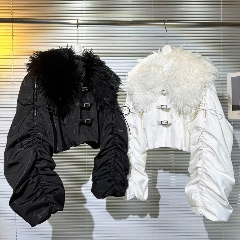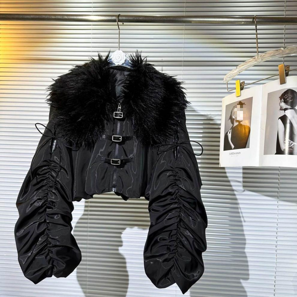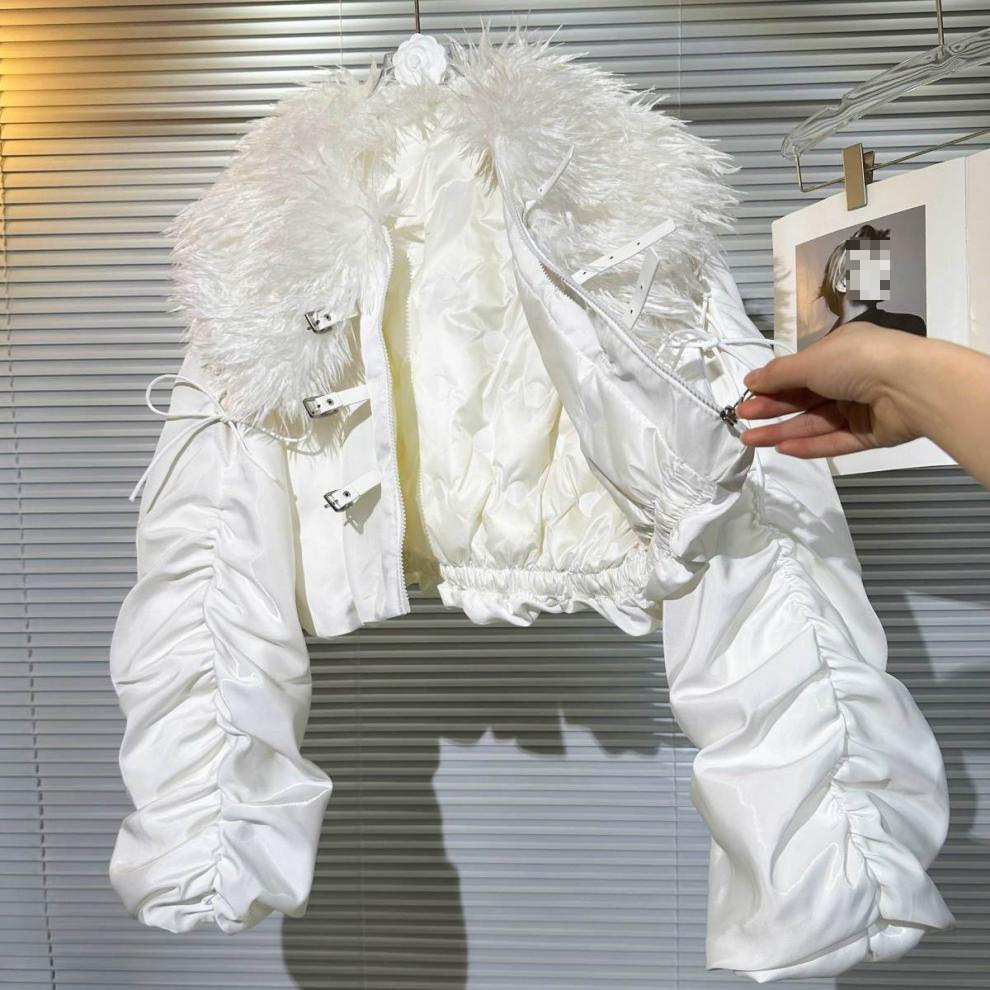 Big Fur Collar Net Red Hot Girl Wear Bright Silk Buckle Fashionable Chic Pleating Down Jacket Coat