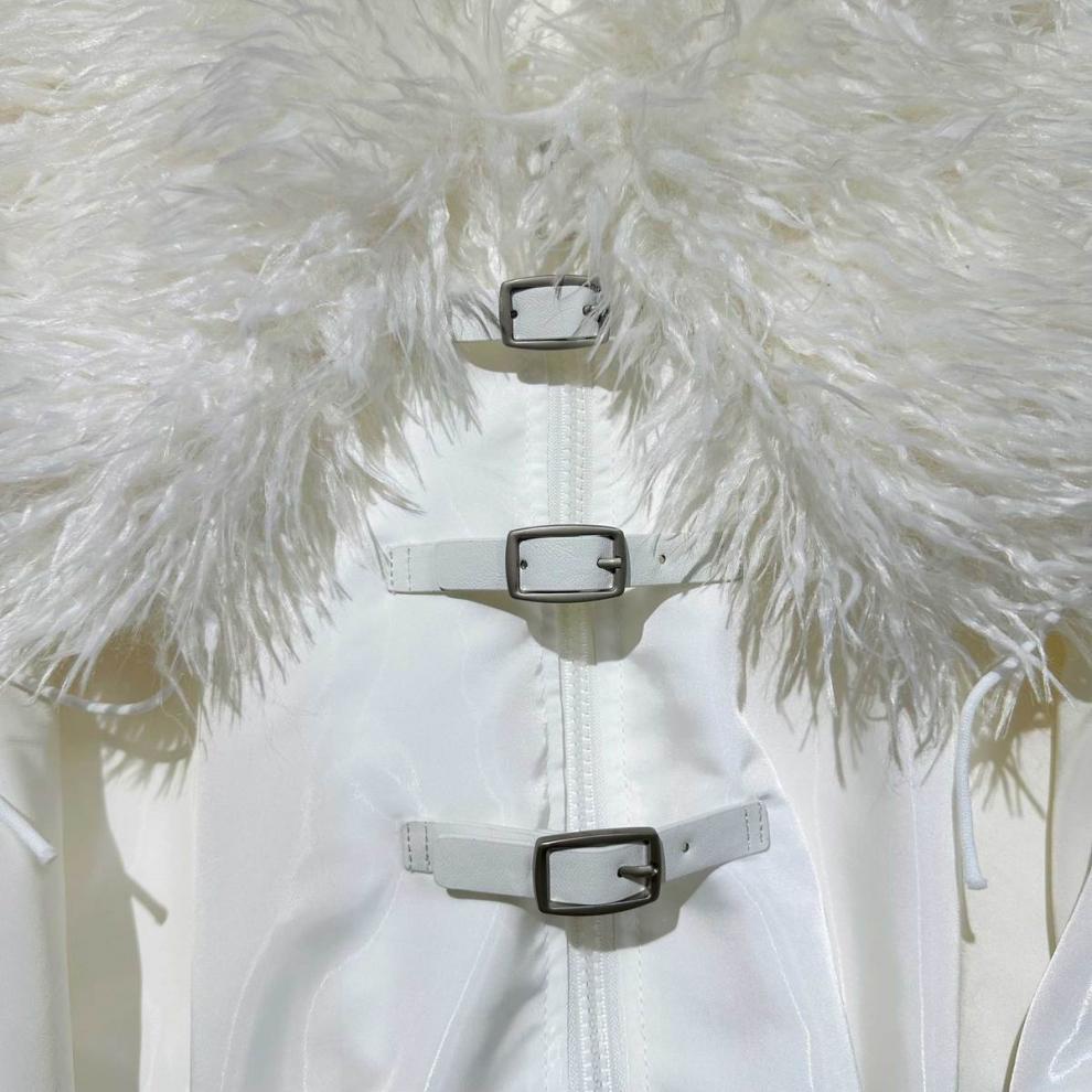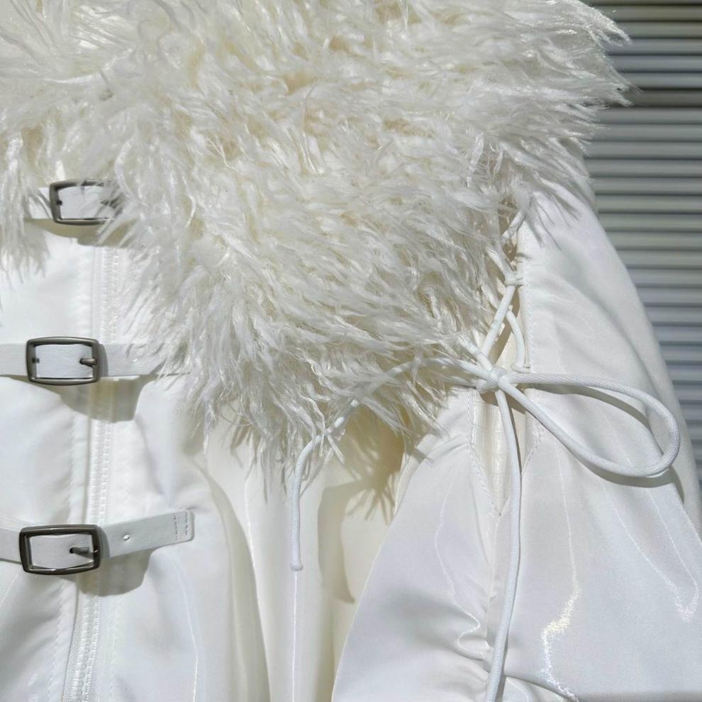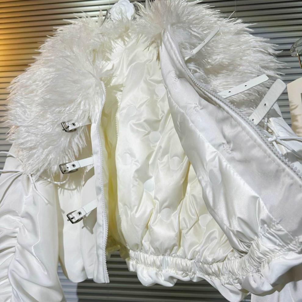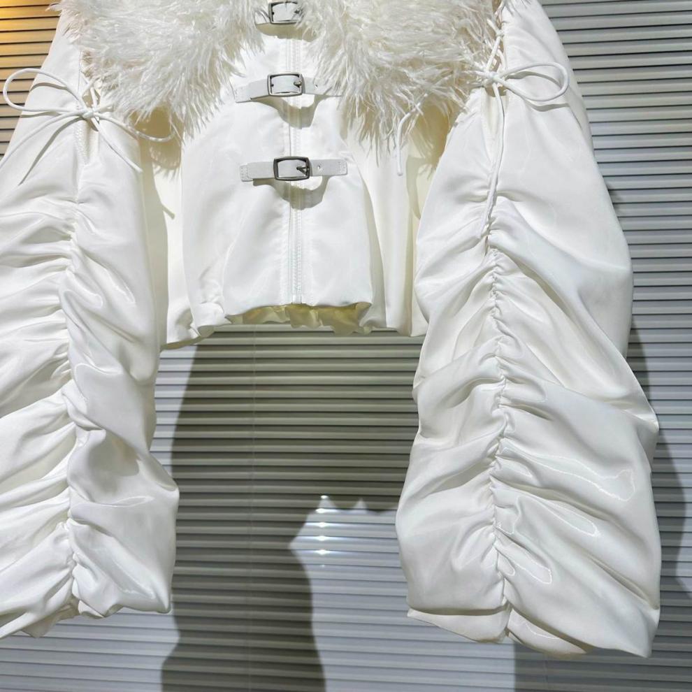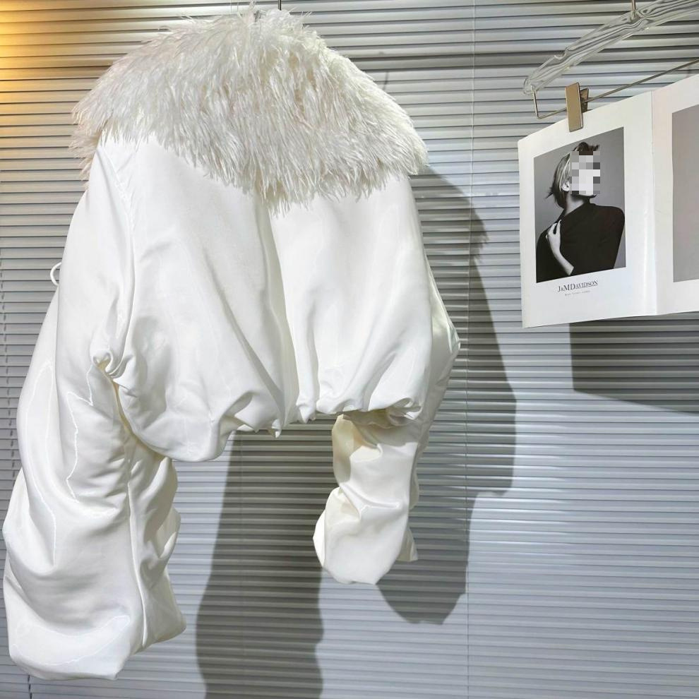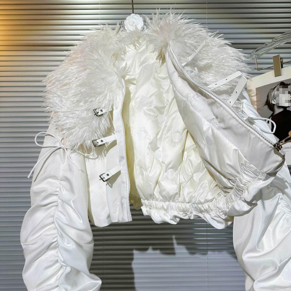 Big Fur Collar Net Red Hot Girl Wear Bright Silk Buckle Fashionable Chic Pleating Down Jacket Coat