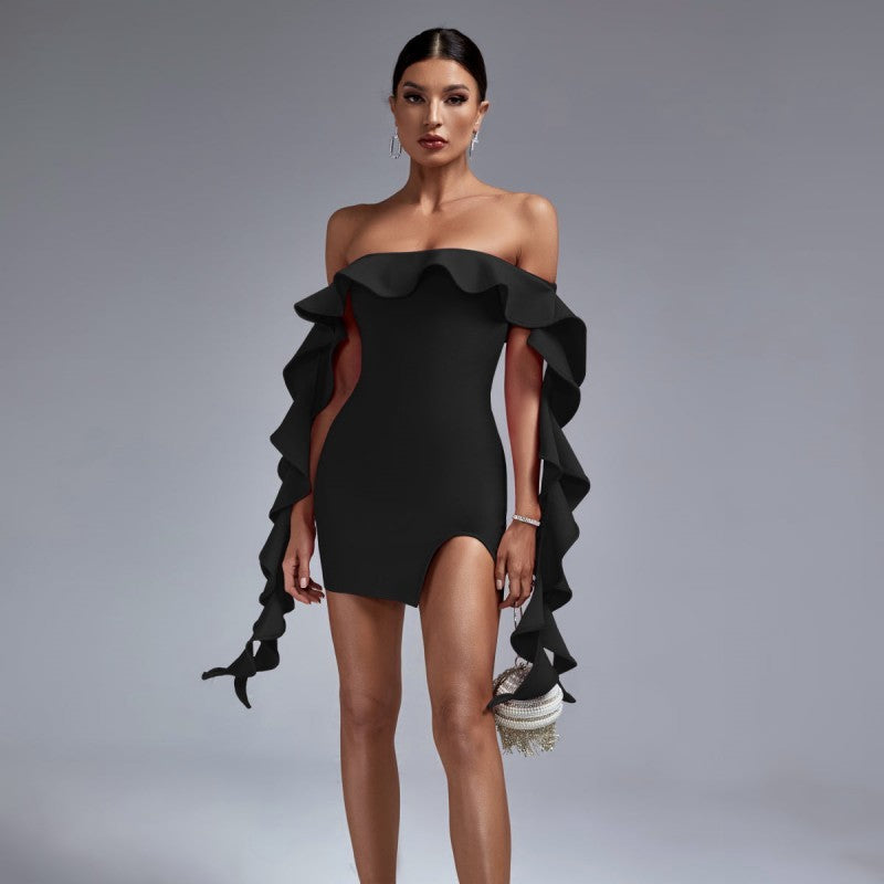 Summer New Solid Color Sleeveless Off-shoulder Wooden Ear Short Split Dress