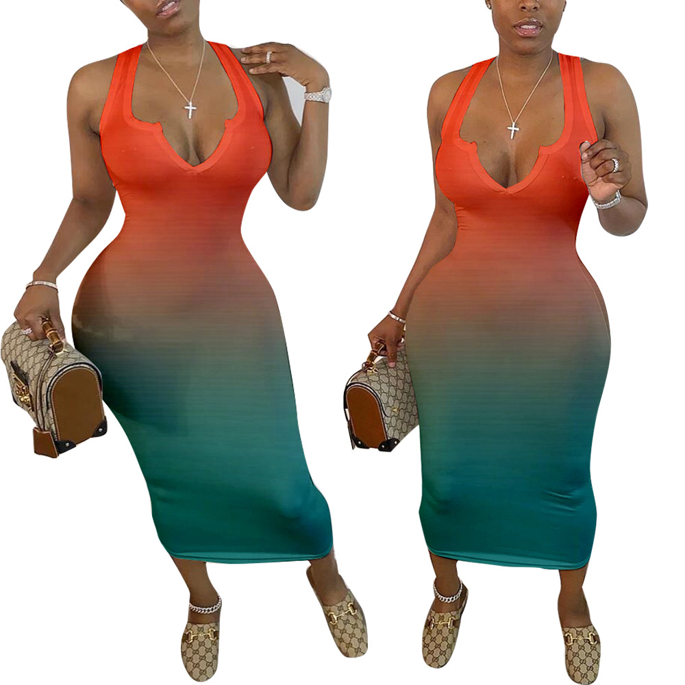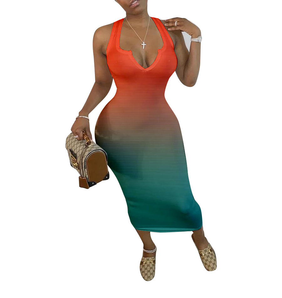 Women's Clothing Skinny V-neck Gradient Color Dress